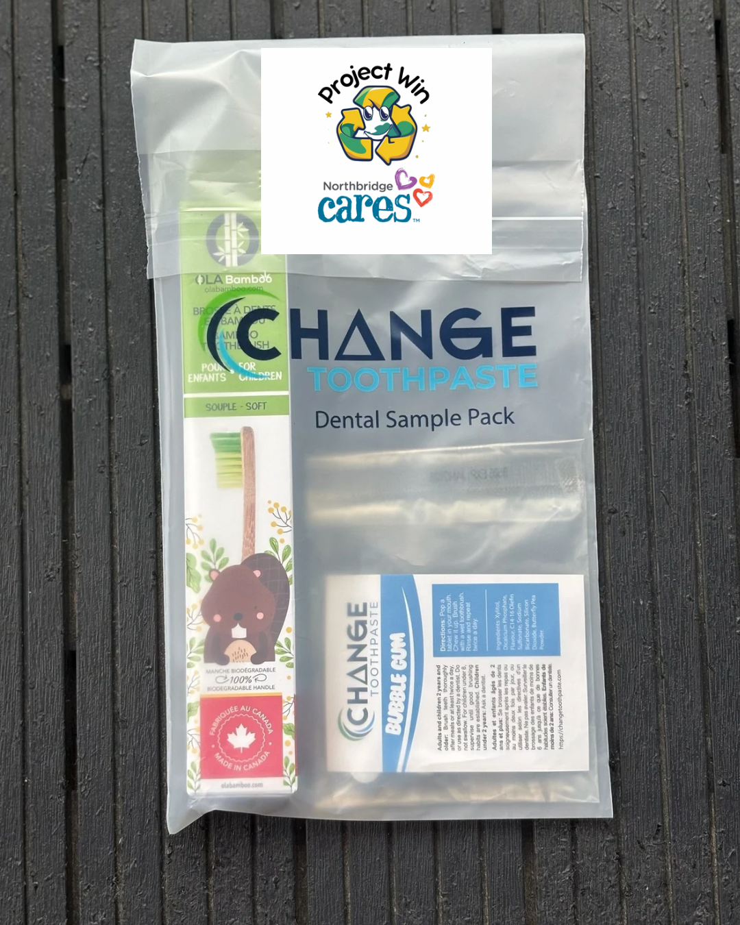 Compostable bamboo toothbrush and compostable toothpaste (bubble gum flavored and mint flavor provided!)